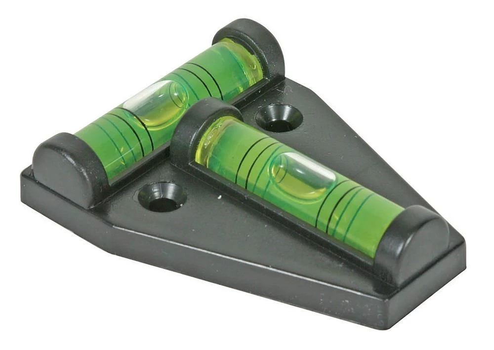 RV T Level can be mounted with screws or adhesive, and provides front-to-back or side-to-side leveling.