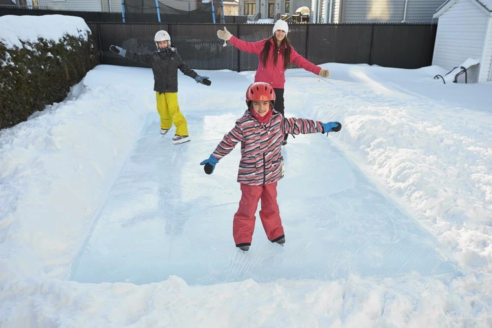 Gazebo Penguin simple rink™ 10 Ft. x 20 Ft. backyard skating rink provides hours of winter enjoyment.
