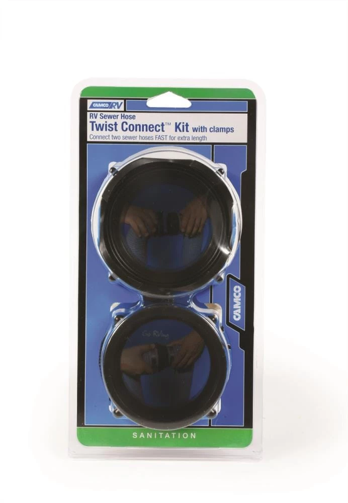 RV Twist Connect Kit connects two hoses quickly and easily for added length. Fits all 3-in sewer hoses.