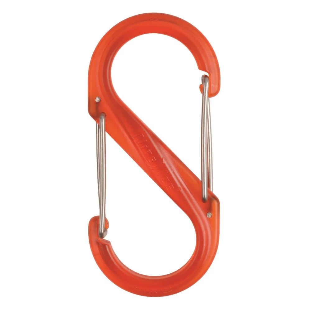 Made of lightweight plastic and available in bright colors, this double-gated gated carabiner has ultra-handy dual spring gates that will hold, secure, and connect everything from house keys and cell phone holsters to technical camping gear. Attach valuables to the center bar for ultimate security, link gate ends to a second set of items and anchor, or connect many items together. This medium size #4 connects everything from water bottles (to belt loops or backpacks), boots, skates, waders, sports gear, and garden gloves (to garage hooks and hanging straps), reusable grocery bags (to closet pegs and grab handles in your car). Identify at a glance while you organize – choose different colors to differentiate sets of keys, luggage, car fobs, ski passes, and all your other organized personal items.