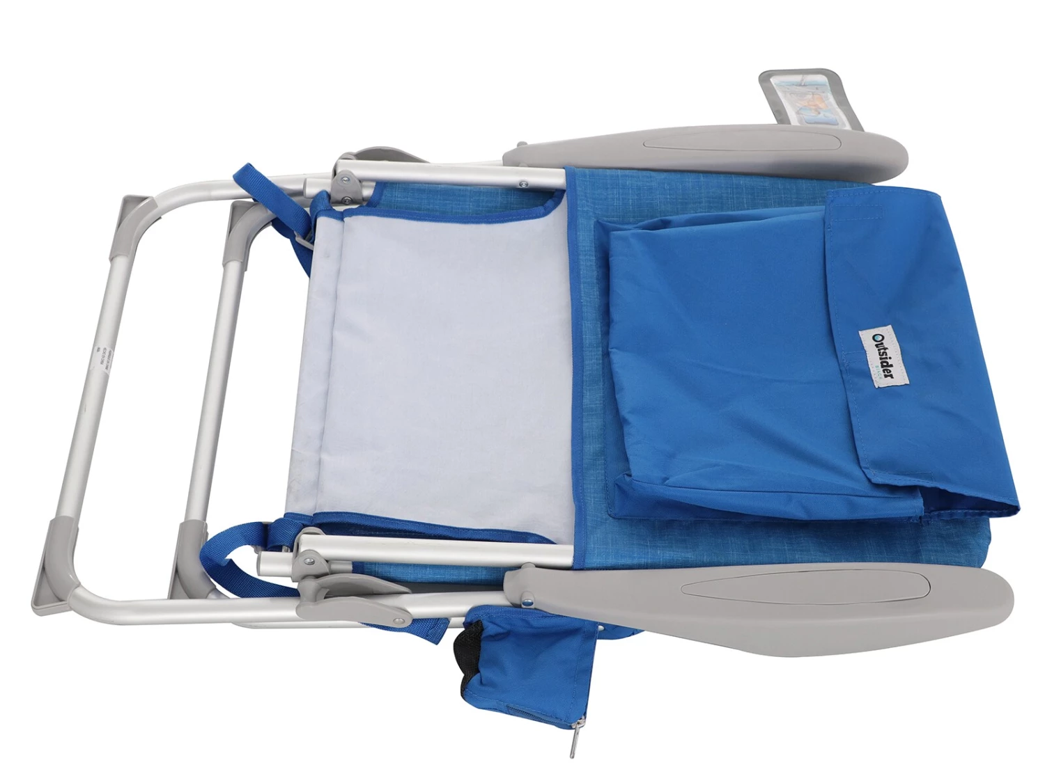Higher-sitting for easy sitting and standing, this chair makes getting in and out of the chair a breeze. The frame is aluminum with durable plastic arms, included deluxe cupholder, waterproof phone bag, and backpack straps. A 4-position reclining function makes it easy to find the perfect lounging position.