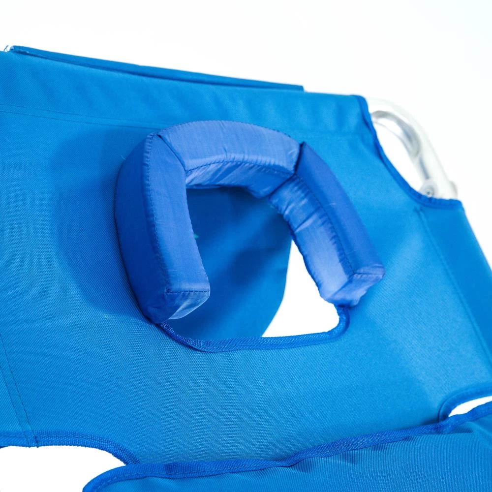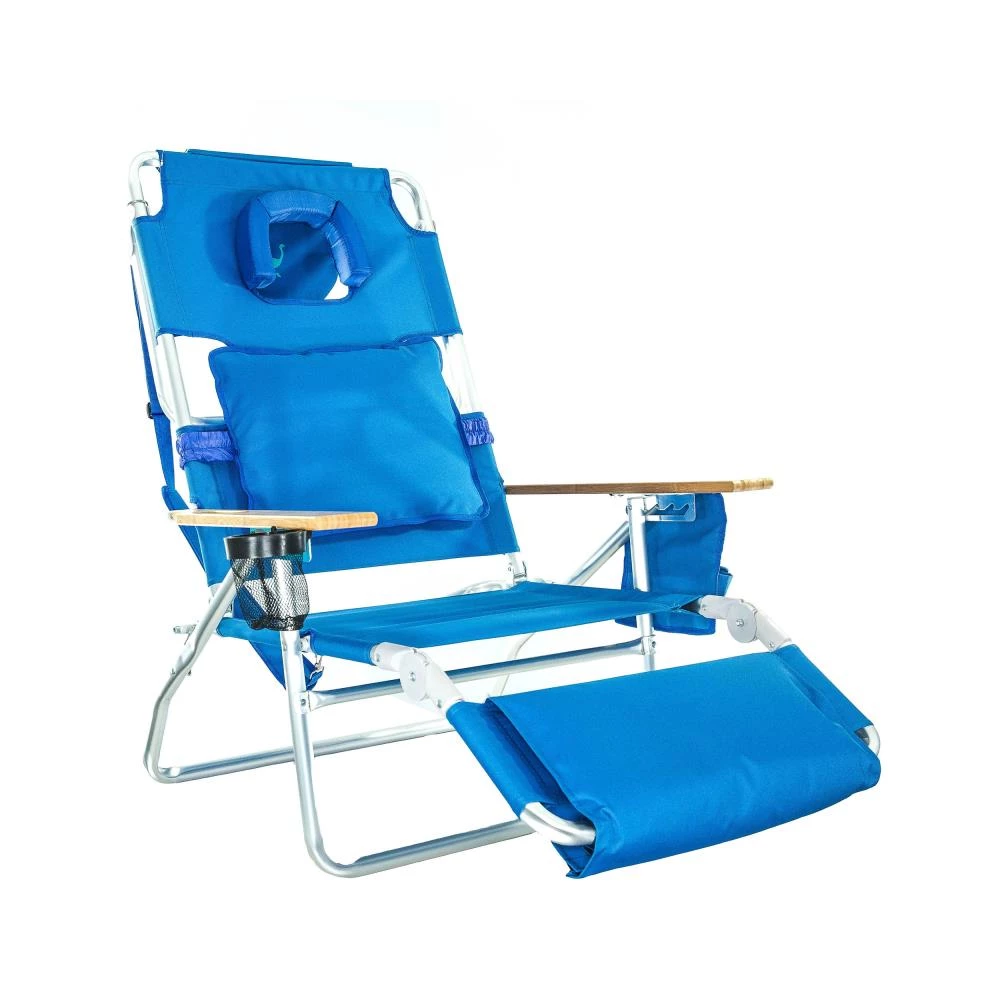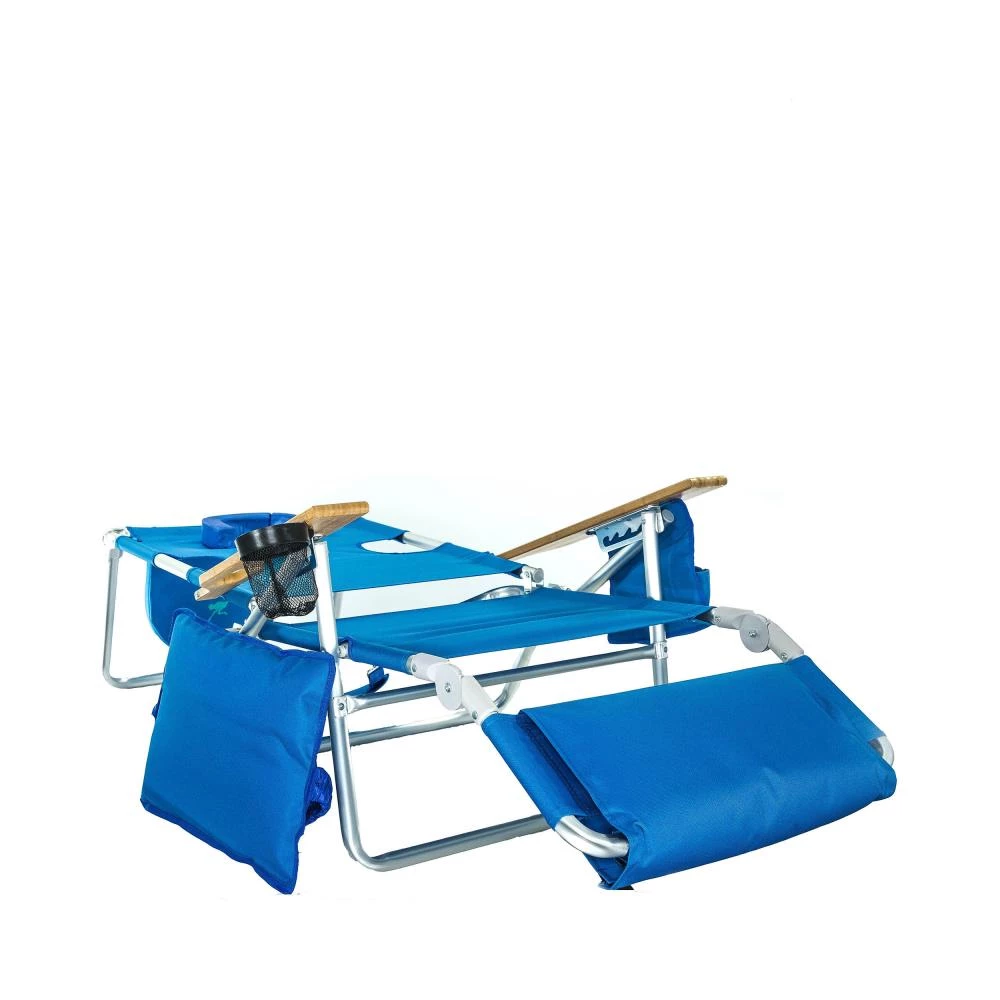 The Ostrich Deluxe is a lightweight beach lounger which allows for lying on back or stomach and easily converts to a reclining beach chair. Innovative patented features enhance your comfort experience. Includes wrapped padded seat and footrest as well as removable lumbar support pillow. Durable aluminum frame folds and unfolds easily and rust proof frame is suitable for extensive outdoor use. Extra wide wooden arm rest cup holder and carry strap round out the features of this luxurious chair.