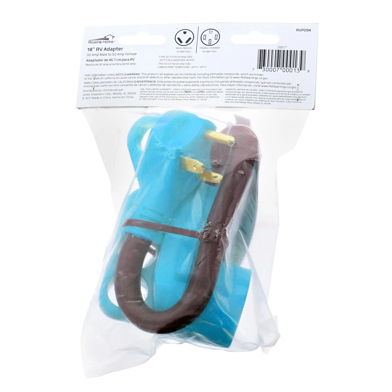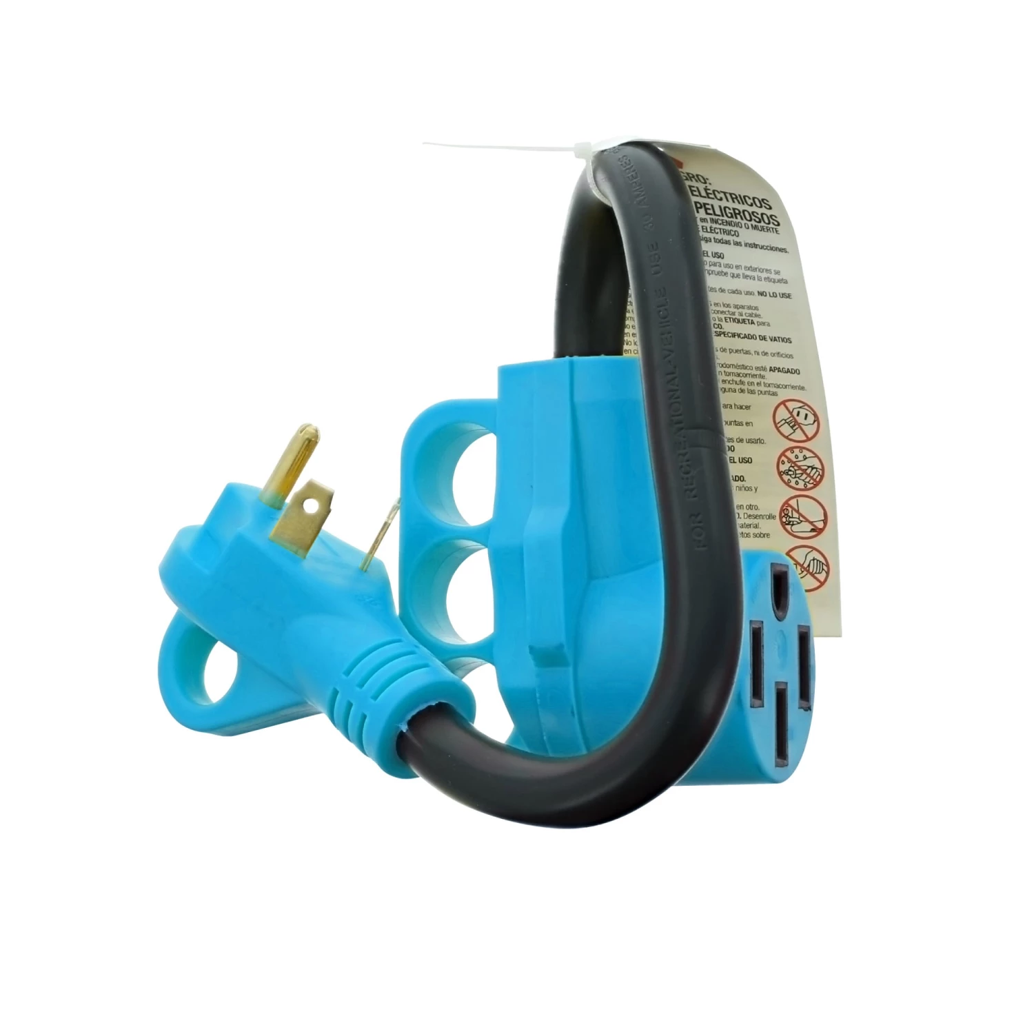 - Uses a standard 30 Amp male to 50 Amp female
