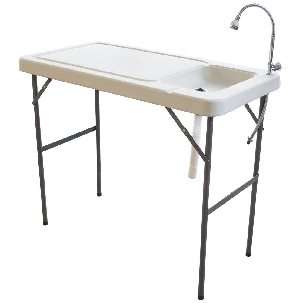 The Sportsman Series Folding Table with Faucet makes messy outdoor work easier. This portable, folding table makes it easy to plant in the garden, clean fish at the dock, or prep dinner at the campsite.