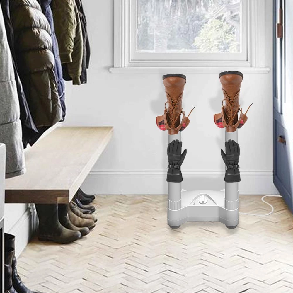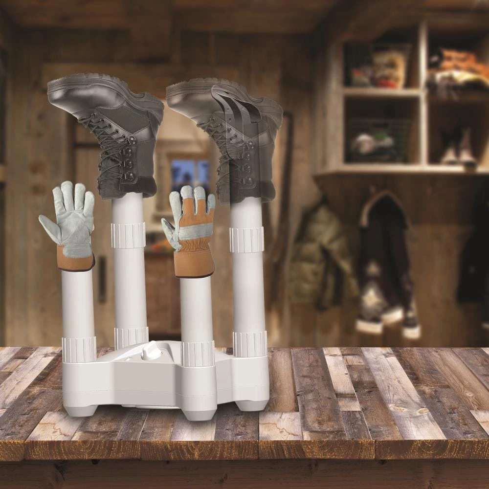 The fast airflow glove and boot dryer is great to quickly warm and dry winter boots and gloves. This compact but powerful heated dryer features 4 ports and 250-Watt of convection heat to dry things quickly and effectively. Perfect for year-round use for sports equipment such as cleats, running shoes, or hiking boots. One of the best benefits of this dryer as that you will extend the life of your boots, gloves, and sports equipment by removing sweat and moisture quickly. This prevents material breakdown. The unit features a 3-hour shut off timer and an overheat safety switch so you can set it and forget it. The 4-ports are quickly removed making for easy storage when not in use.