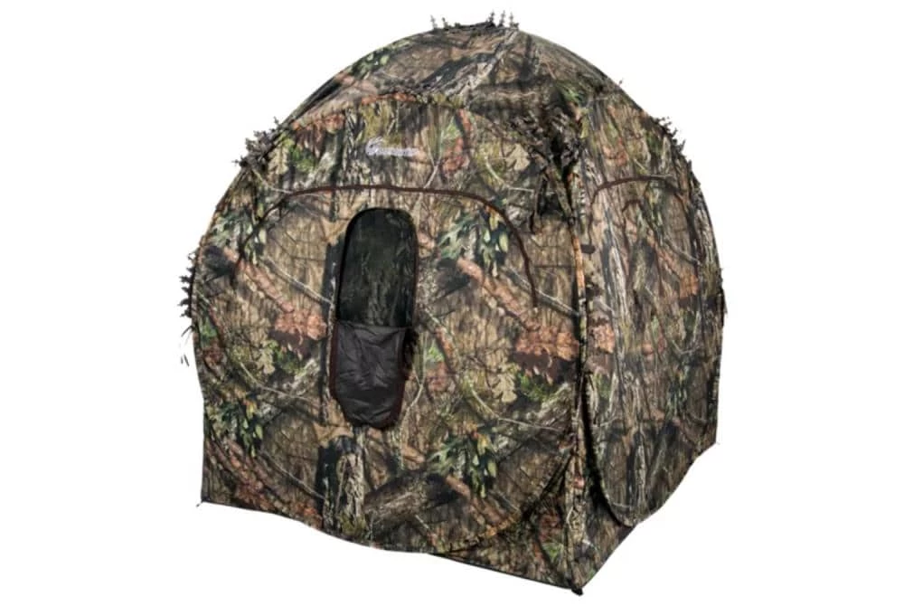 Ameristep®’s original ground blind, the Doghouse® features several top technologies to keep you hidden through gun or bow hunting seasons. The Doghouse hunting blind blends into nearly any woodland or brush land environment with 3D Edge ReLeaf® trim. Its tough Durashell™ Plus exterior provides durability, while its ShadowGuard™ interior eliminates shadows and silhouettes that could catch the eye of your game. One large window on the front and 7 shooting portals provide for rifle hunters and bow hunters alike. Comes with a handy backpack carrying case for quick and easy portability, stakes, and high-wind tie downs. The Doghouse ground blind sets up and takes down effortlessly, so you can remain mobile to keep up with game movements.
