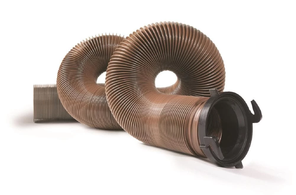 Heavy Duty RV Sewer Hose with pre-attached fitting. Heavy duty 15′ sewer hose comes with attached bayonet fitting for easy, convenient hookup. Compresses to 27″ for storage.