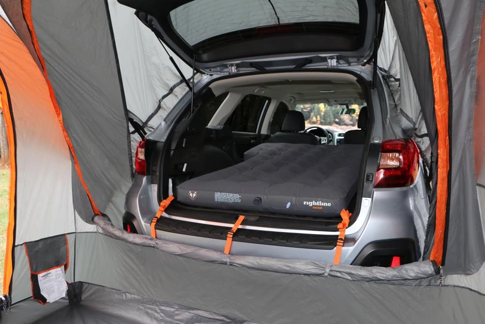 The SUV air mattress is made from heavy duty PVC with a comfortable flocked top surface. T-shape design maximizes mattress fit in rear cargo areas. O-beam support ensures you will get a good night’s sleep. The 12V air pump and easy inflate valve let you inflate or deflate the mattress in seconds. The SUV air mattress folds up into a stuff sack for easy storage.