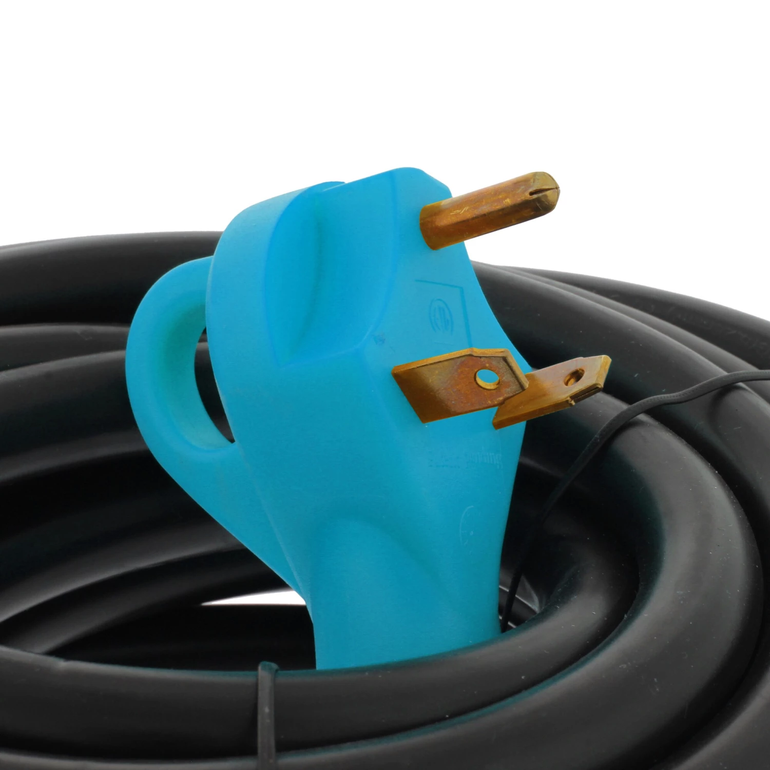 Seeing the country in a recreational vehicle can be filled with outdoor adventure, but that does not mean there are no challenges. In an ideal world, you could just pull your RV up to an electrical pedestal at a campground or recharging station and plug-in the connector. Unfortunately, many situations can be more difficult than that, from maneuvering around another vehicle to parking three spots away from the utilities pedestal. Having this 25 ft. hook-up cord with 30 Amp adapter enables you to connect, even if something prevents you from parking next to the next utility location. The heavy-duty cold weather jacket is rated to -20 degrees F. this means the cord will remain flexible under most weather conditions. The pull-out handles help unplug from tight connections with ease. Confirm the hook-up is 30 Amp to prevent damage to the electrical system.